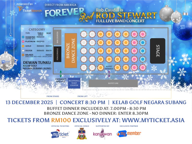Date; Saturday 13th Dec 2025, Venue: Kelab Golf Subang Malaysia, Dine 7pm - 8.30pm, Concert 8.30pm - 10pm. BuyNow Online