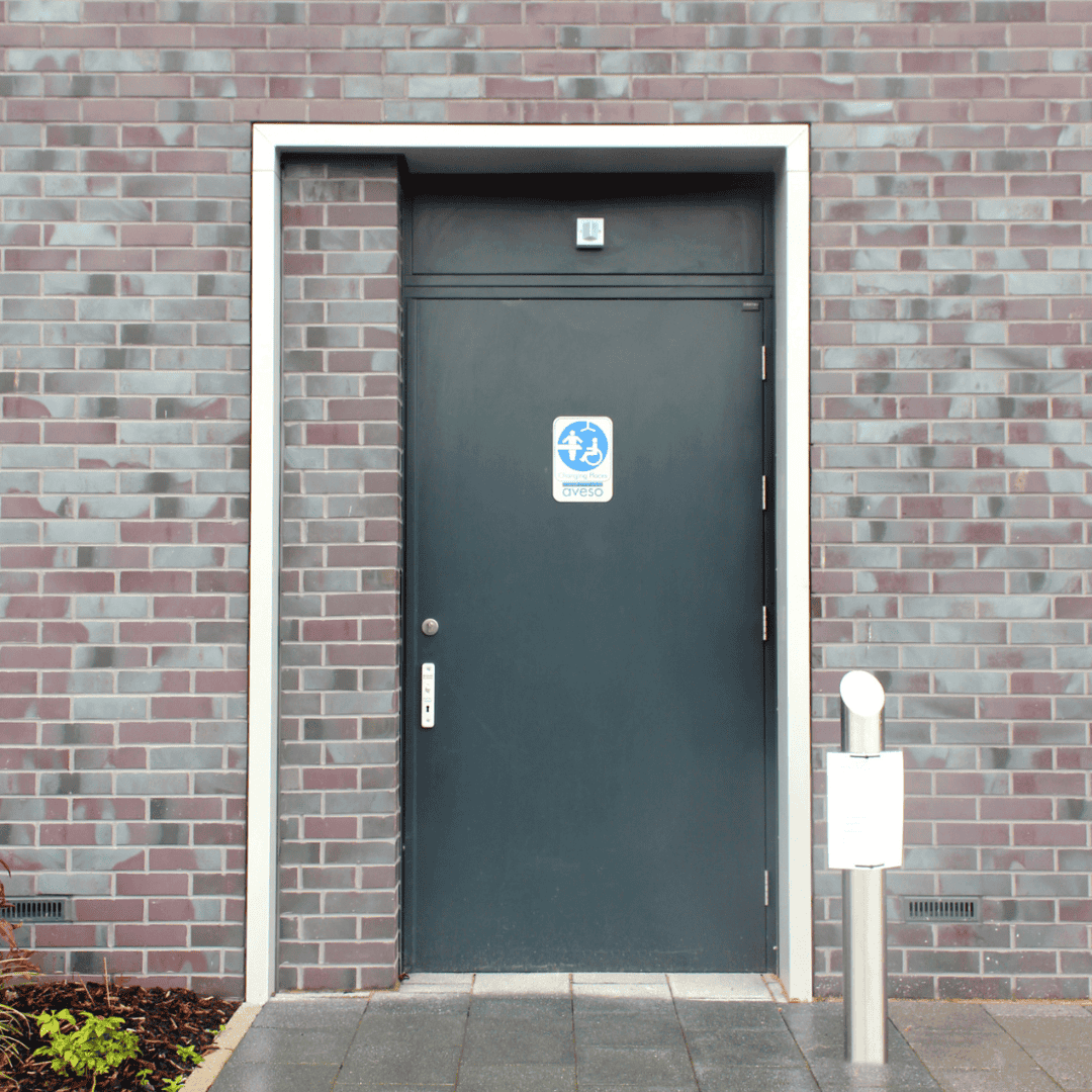- 20 louvred steel doors with integrated vision panels for bike stores and bin sheds