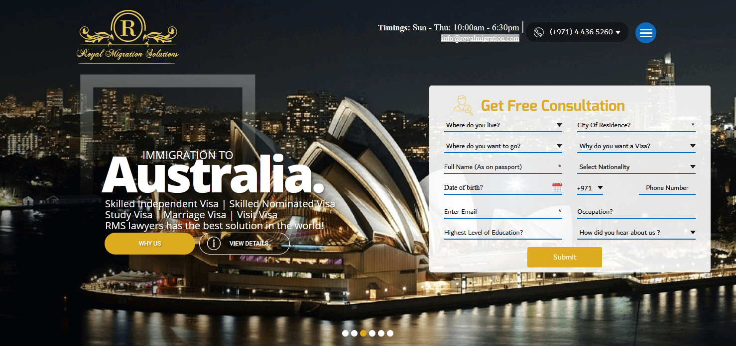 Royal Migration Solutions is a well-known organization that has been providing professional visa and immigration services, relocation services, corporate/work visas, immigration policy advisory, study visas, and more for several countries. It is a one-stop solution for all your immigration requirements. Royal Migration is known for its reliable and ethical immigration services. Their global reach, local expertise, and customized services at affordable prices make it one of the most liked immigration service providers in Dubai. Every Royal Migration review left-back by their customers reveals how well they manage all their grievances.
