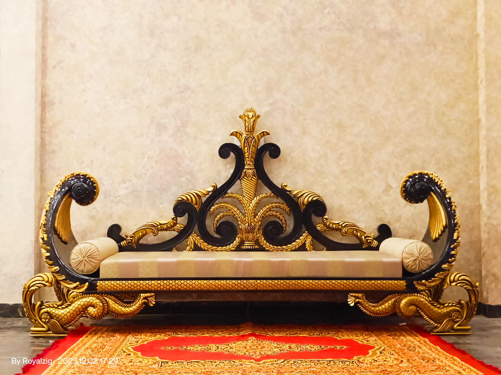 Each zone is adorned with opulent chandeliers hand-carved from teak, bespoke console tables, regal canopy beds, ornate mirrors, plush sofas, hand-knotted rugs, artisanal lighting, and rare decorative accessories — all crafted under one roof by Royalzig’s master artisans.