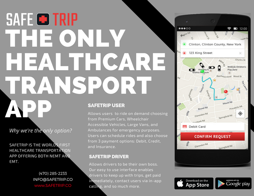 SAFETRIP is the world’s first healthcare rideshare app whose mission emphasizes making transportation affordable and accessible. SAFETRIP, which launched operations in January 2018, will remain a privately held corporation. The SAFETRIP User and Driver applications are available on Google Play and Apple App Store. Follow SAFETRIP via social media platforms including Facebook and Instagram.