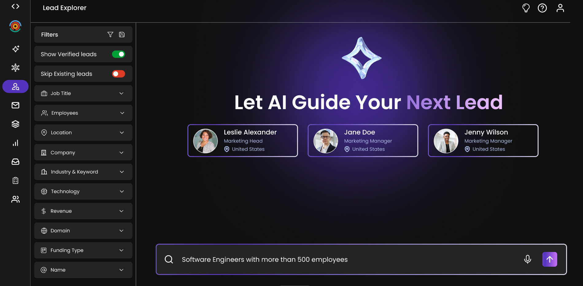 - Lead Explorer – Access 50M+ verified B2B contacts with advanced filters.