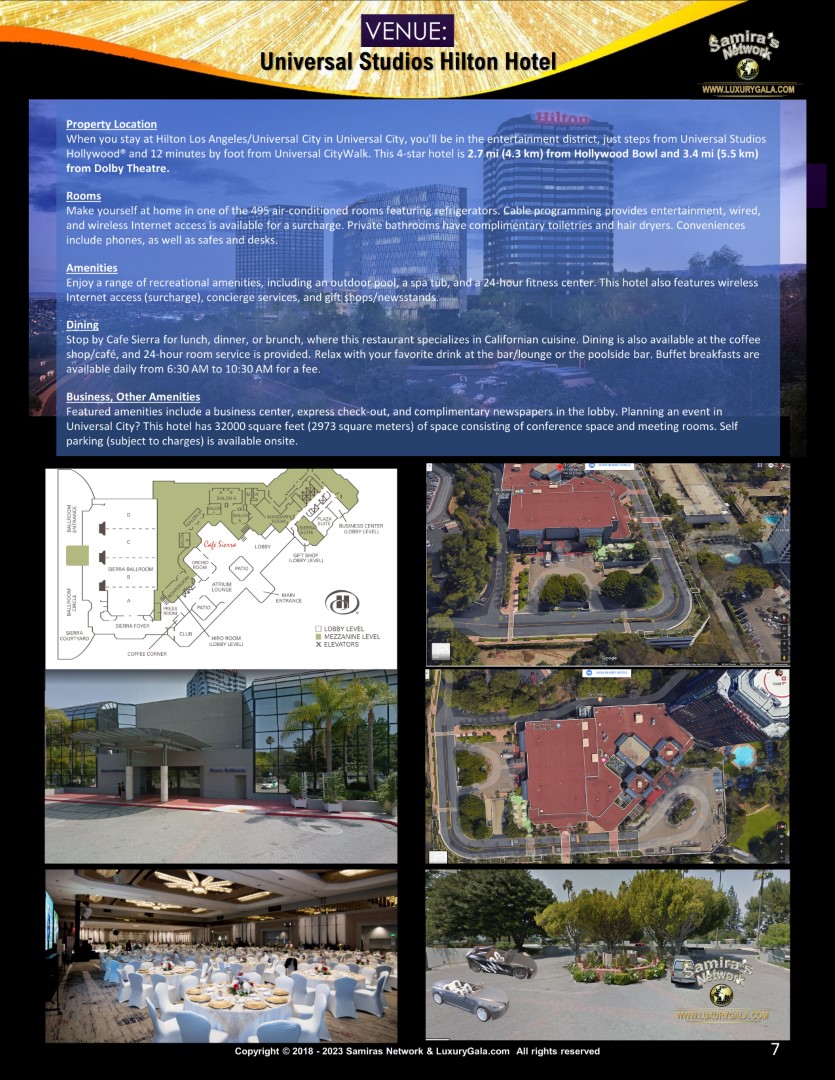 Los Angeles, California Sep 10, 2023 (Issuewire.com) - Get ready for a night of glitz, glamour, and Hollywood magic as Samira's Network proudly presents the annual Luxury Gala 2024! This star-filled extravaganza will take place at the opulent Hilton Hotel, situated at 555 Universal Hollywood Dr, Universal City, CA 91608.