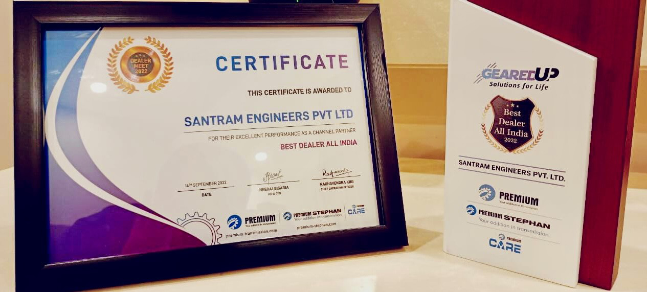 Ahmedabad, Gujarat Sep 19, 2022 (Issuewire.com) - Santram Engineers Private Limited, a prominent industrial gearbox supplier in India and a Premium Transmission channel partner, was announced as a winner of the Best Dealer All India 2022 Award in the top category by Premium Transmission Private Limited – India’s first indigenous industrial gearbox manufacturing company and today a leading provider of power transmission solutions globally. Premium Transmission presented the award at the All India Dealers Meet organized in Jaipur at Le Meridien Hotel.