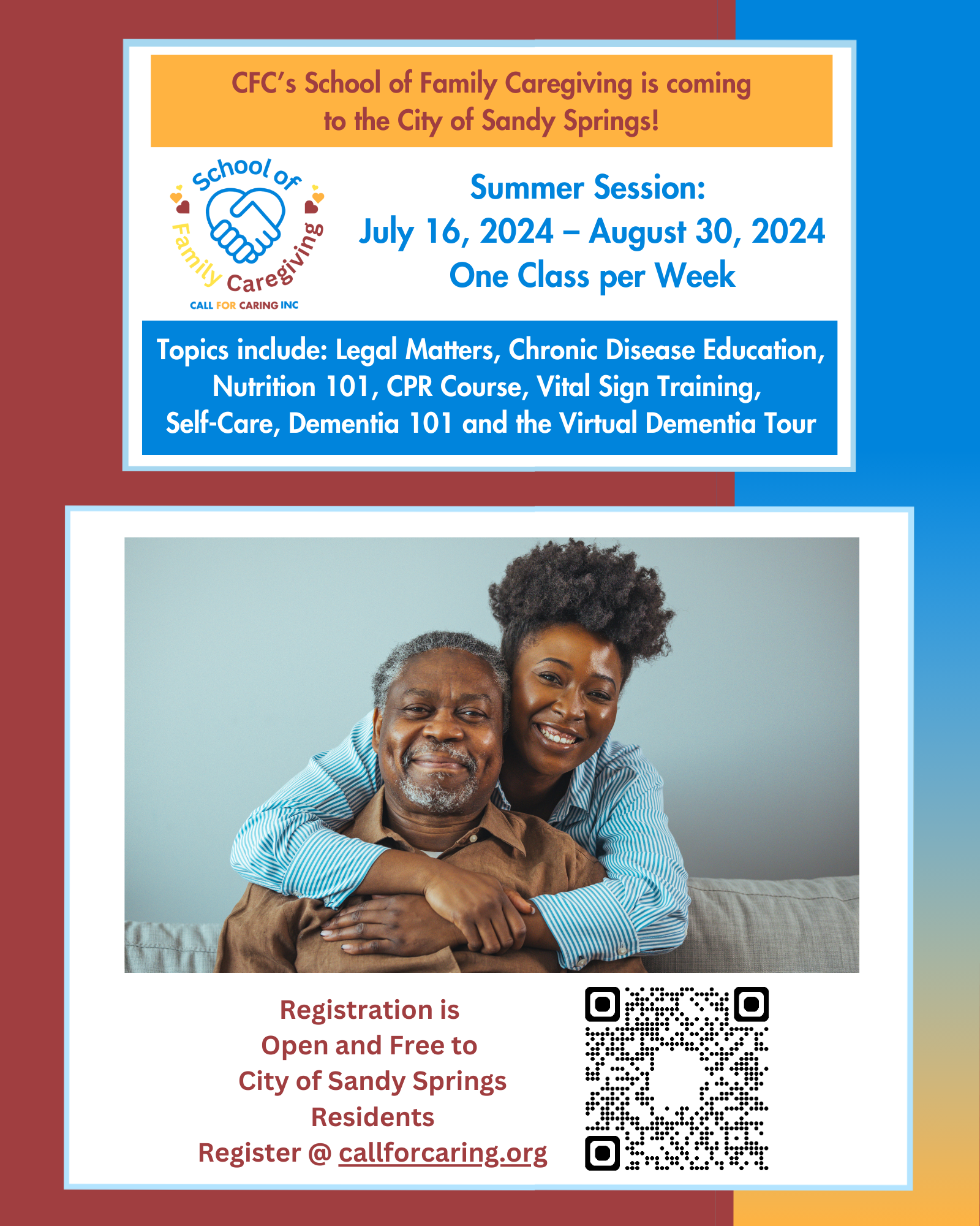 Sandy Springs, Georgia Jun 26, 2024 (Issuewire.com) - Call For Caring Inc. presents the School of Family Caregiving for the City of Sandy Springs residents.