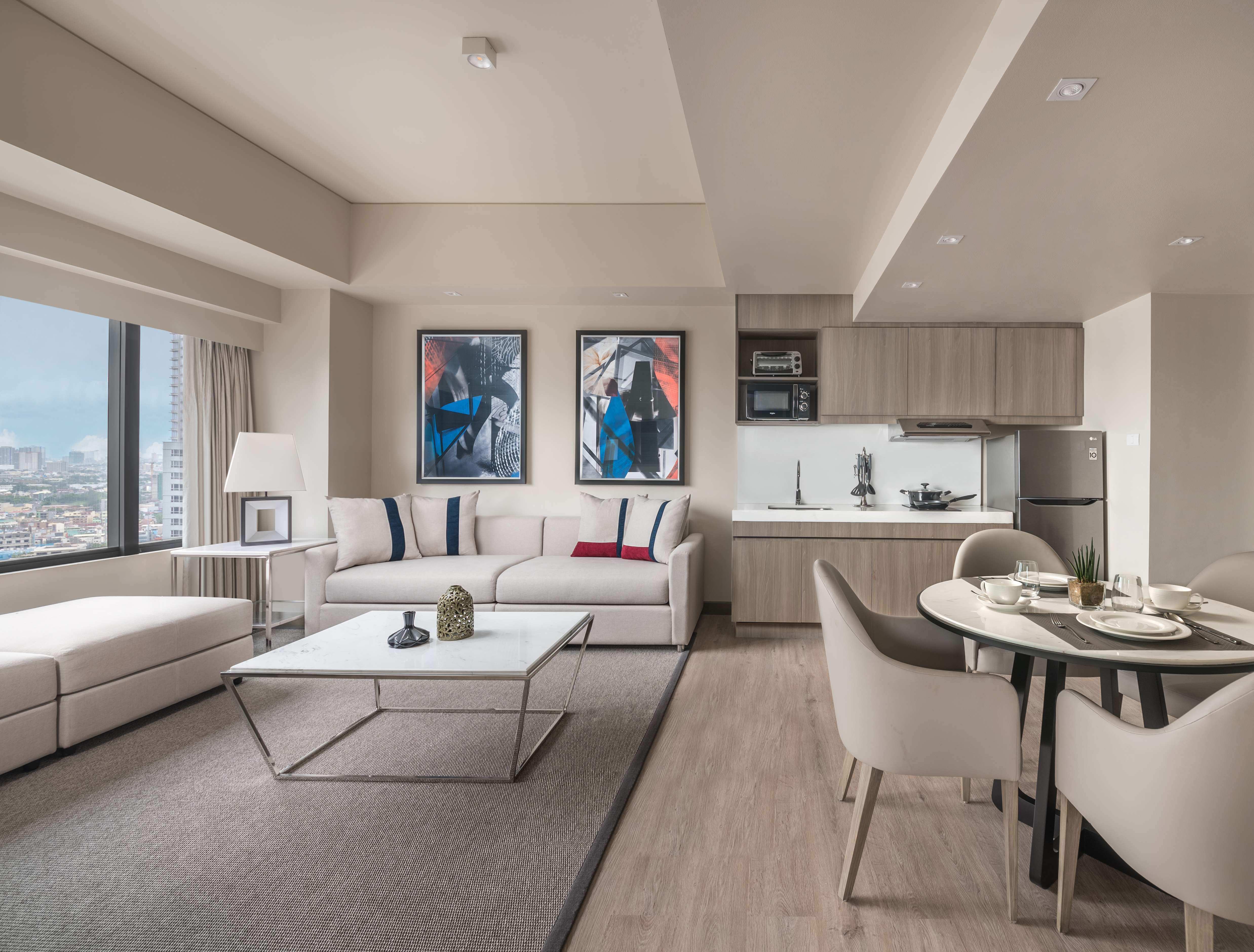 Located within Makati Central Business District, with 293 serviced residences ranging from studio to larger pet-friendly 1- to 3-bedroom apartments. A roof deck bar, an a la carte and buffet restaurant, and a lobby cafe are available for walk-in and in-hotel guests.