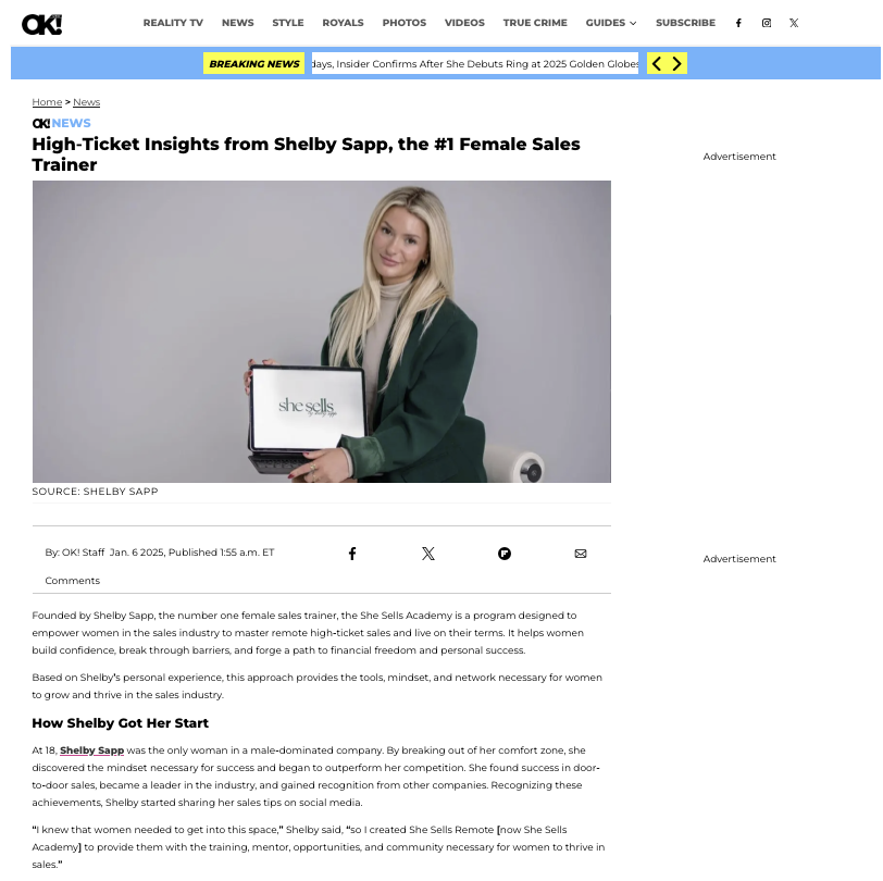 Shelby Sapp is a globally recognized sales entrepreneur, motivational speaker, and founder of the She Sells Academy. Known as “The Sales Queen,” Shelby has empowered over 1,500 women to achieve financial independence through high-ticket remote sales. Her strategies have been featured in top publications and earned her a place on the prestigious “Top 15 Sales Trainers of 2025” list, alongside industry leaders like Grant Cardone and Jeremy Miner. Shelby is a proud graduate of Arizona State University’s Barrett Honors College, where she earned her degree in Business Finance with Summa Cum Laude honors.