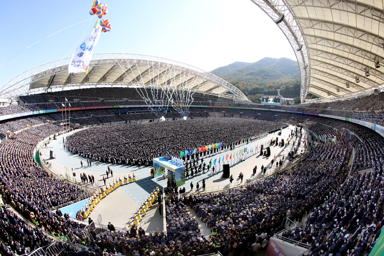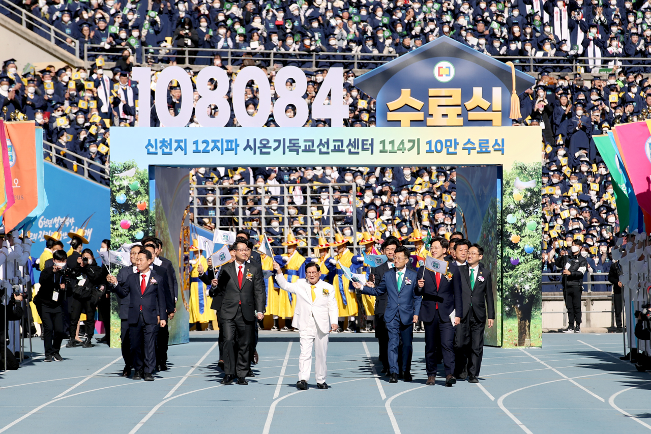 Zion Christian Mission Center, a Bible education institution of Shincheonji Church of Jesus, held the ‘Shincheonji 12 Tribes Zion Christian Mission Center 114th Graduation Ceremony’ at Daegu Stadium. A total of 108,084 students graduated from this 100,000 graduation ceremony. It is the third time producing graduates more than 100,000, following 103,764 in 2019 and 106,186 in 2022.
