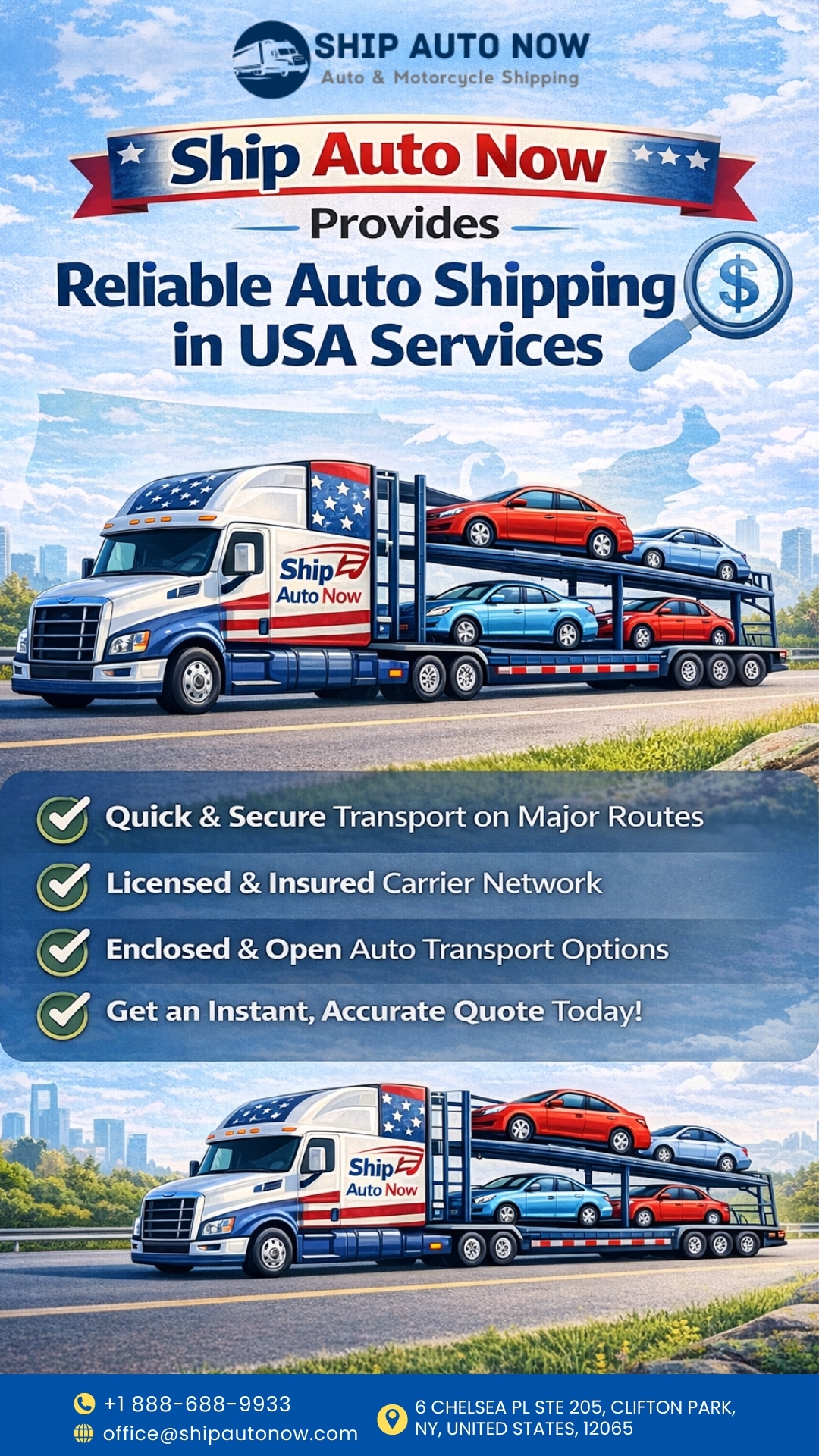 Clifton Park, New York Jan 29, 2026 (Issuewire.com) - Shipping Auto Now Having Its Trusted Auto Shipping In USA Options: A trusted name in automobile shipping is now making car shipping easier and more affordable. A company offers quick, secure, and licensed auto transport on every major route in the United States for people, their families, and businesses.