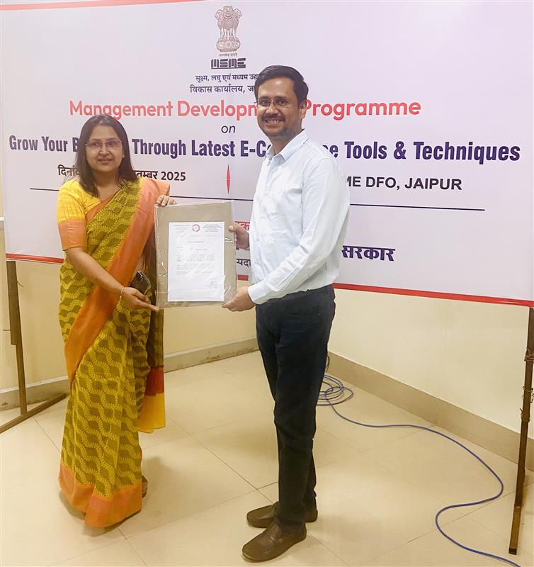 Jaipur, Rajasthan Dec 30, 2025 (Issuewire.com) - The Jaipur Government, through the MSME-DFO Jaipur under the Ministry of MSME, Government of India, recently organised a Management Development Programme focused on helping small and medium enterprises strengthen their business growth through e-commerce tools and digital techniques.