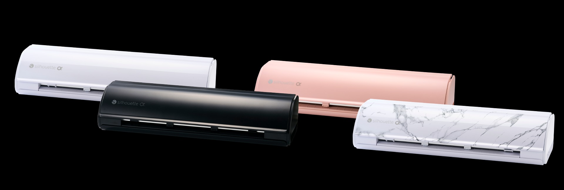 The Silhouette CAMEO5α presents 4 fine finishes—Classic White, Matte Black, Matte Pink, and Bianco Carrara—stylish for creative interiors. On the other hand, the Silhouette CAMEO5α PLUS, in brilliant matte black color, extends its capabilities with a wider cut range, ensuring versatility for big projects without any compromise on precision.