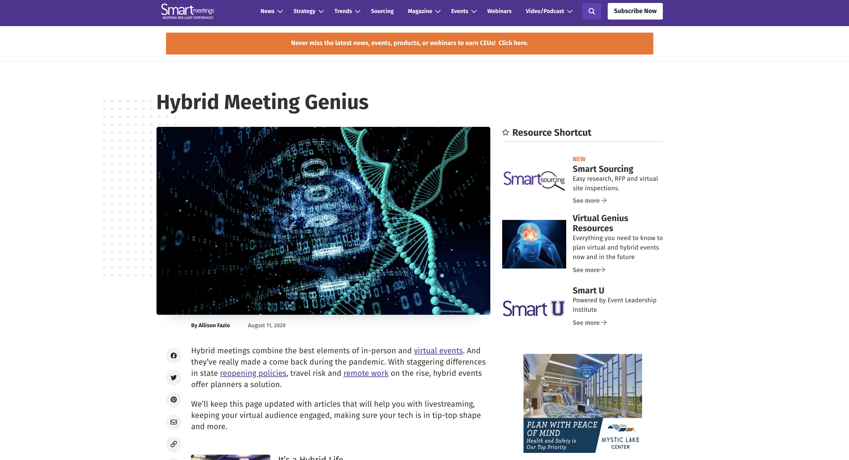 The first feature article in the series was “It’s a Hybrid Life: How to plan for virtual and in-person audiences.” It covers what meetings may look like when conference rooms reopen and why this is the best time to experiment to ensure you are delivering what your audience needs.