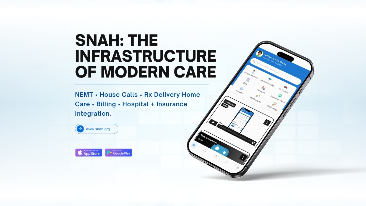 The platform SNAH.org from SNAH Healthcare Software Management enables home healthcare transformation by delivering premium patient-focused services including home healthcare, mobile doctors, prescription delivery, and non-emergency medical transportation (NEMT).