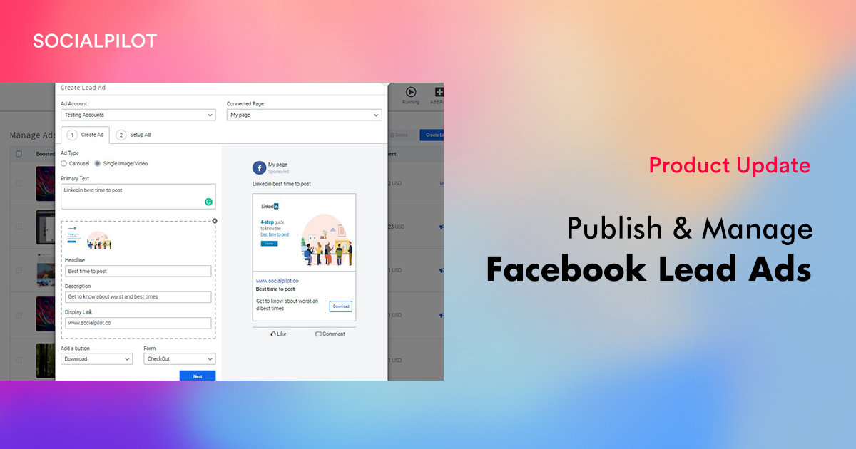 Walnut, California May 22, 2020 (Issuewire.com) - SocialPilot - a leading social media management product today introduced the functionality to publish Facebook lead ads.