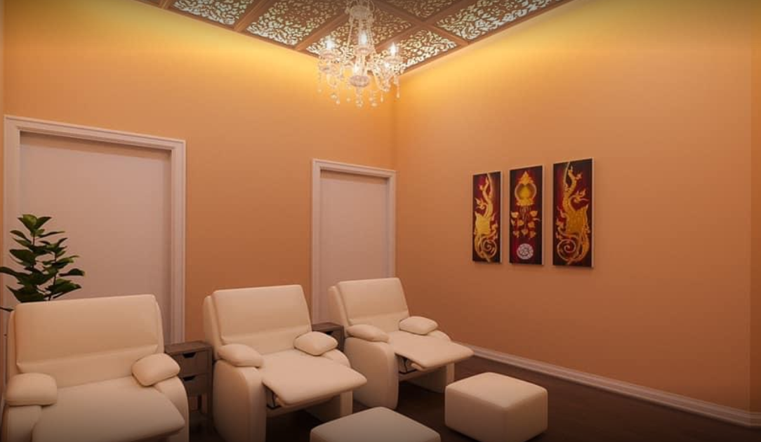 The new location located by Staples in St. Albert is a newly renovated facility with a beautifully decorated interior and calming presence. Inspired by both traditions with modern elements. The interior has Thai decorated ceilings and art pieces with wooden floors, marble, and modern furniture pieces. Chandeliers hang from the ceiling, and soft relaxing nature music plays in the background to transport you to a different dimension.