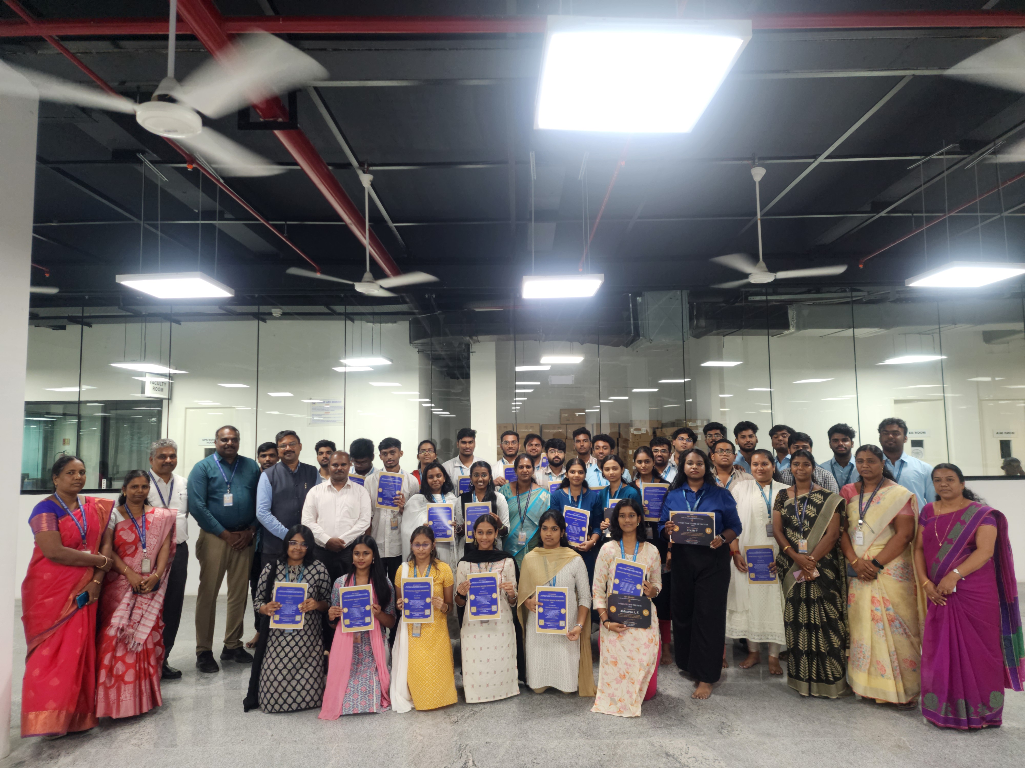 A total of 29 second-year and 14 third-year students were awarded certificates for their successful internships. Notably, Ms. Trusha V received the Best Team Leader Award for her exemplary leadership, while the Best Team Award was conferred upon G. Raagavi, A.K. Aishwarya, G. Prashanth, and V.A. Savitha for their outstanding collaborative performance.