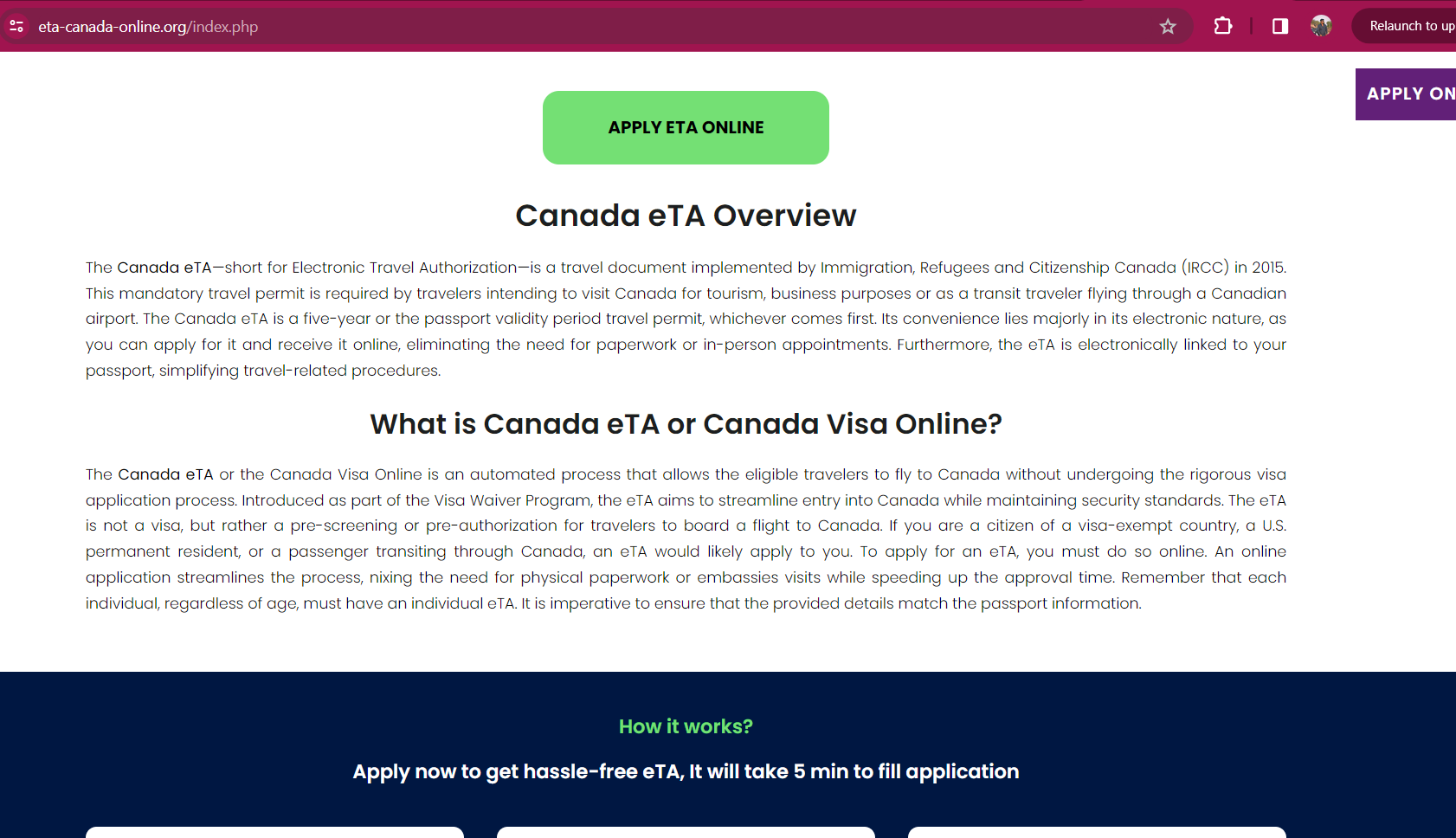 ETA CANADA SERVICES support@eta-canada-online.org 5-4658 Barter Street https://eta-canada-online.org/