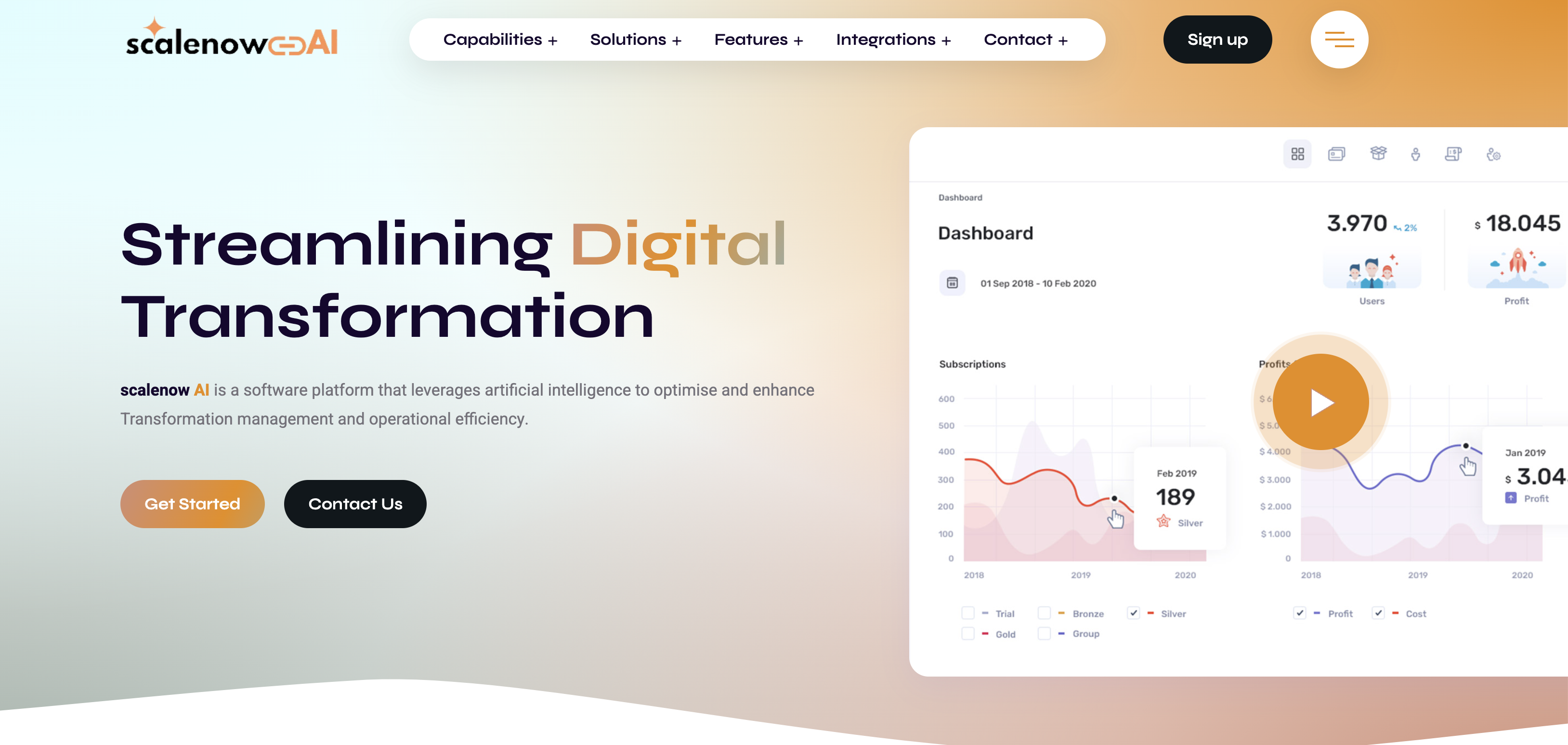 scalenowAI, a product of scalenow is an innovative software platform designed to optimize transformation management and improve operational efficiency through AI-driven insights. scalenowAI helps businesses scale their efforts effortlessly, ensuring success at every stage.