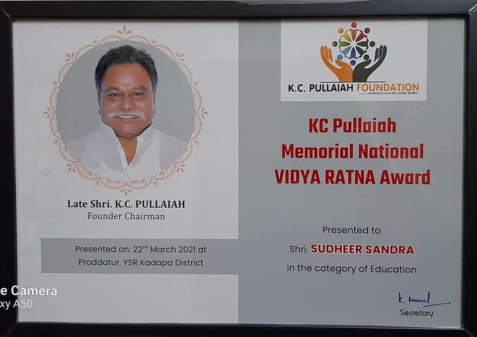 Hyderabad, Telangana Mar 24, 2021 (Issuewire.com) - Recognizing Hyderabad-based psychologist Sudheer Sandra’s work as a trainer for over a decade, K. C. Pullaiah Foundation bestowed upon him their prestigious Vidhya Rathna Award 2021.