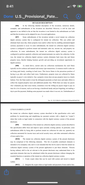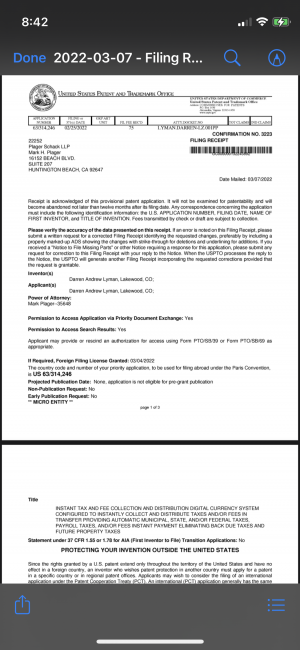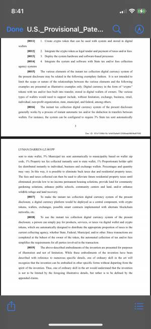 This started out as a crypto project to help solve homelessness I have been working on for years. I patented this process as the answer to all of the integration red tape. I have attached the patent paperwork beginning, acceptance letter, and an example flow chart of crypto for Colorado possibility. "Taxing crypto" ultimately means in transfer. States and Municipalities will receive tax the moment the sale is made, and every state & country will have its own crypto.