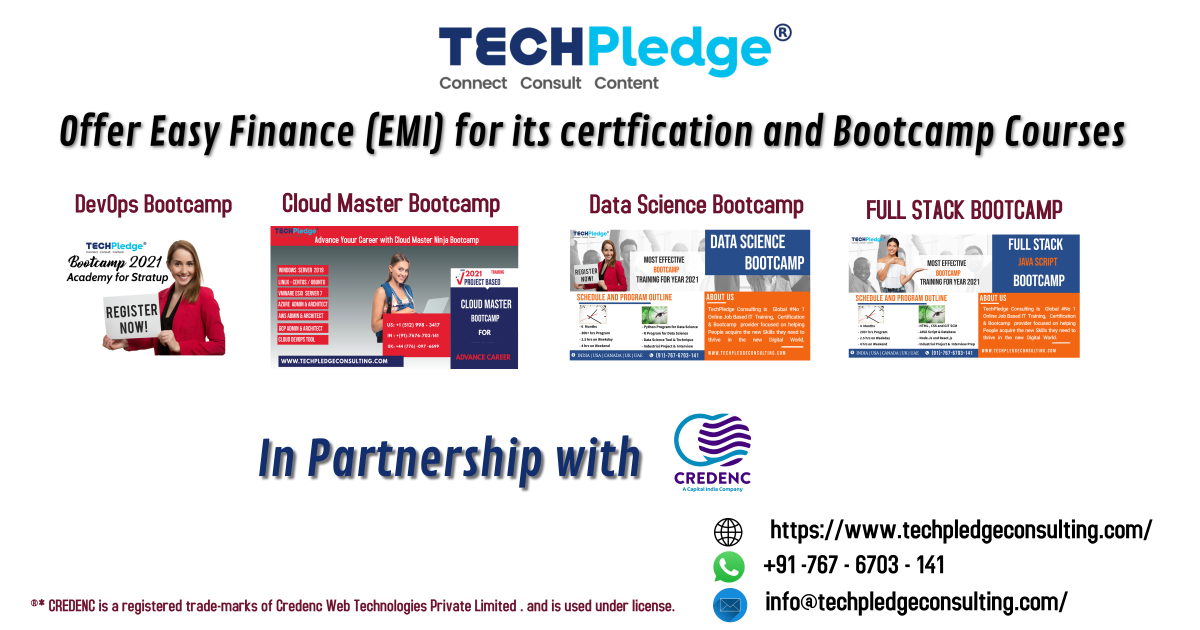TechPledge Consulting was formed with a mission to help people acquire the right job role-based skills in the field of Cloud, DevOps, Data Science, and Security domain, they need to thrive in the new digital world, TechPledge Consulting is looking forward to having long-lasting collaboration and partnership with Credenc, in providing quality training and education to many without worry about financing.
