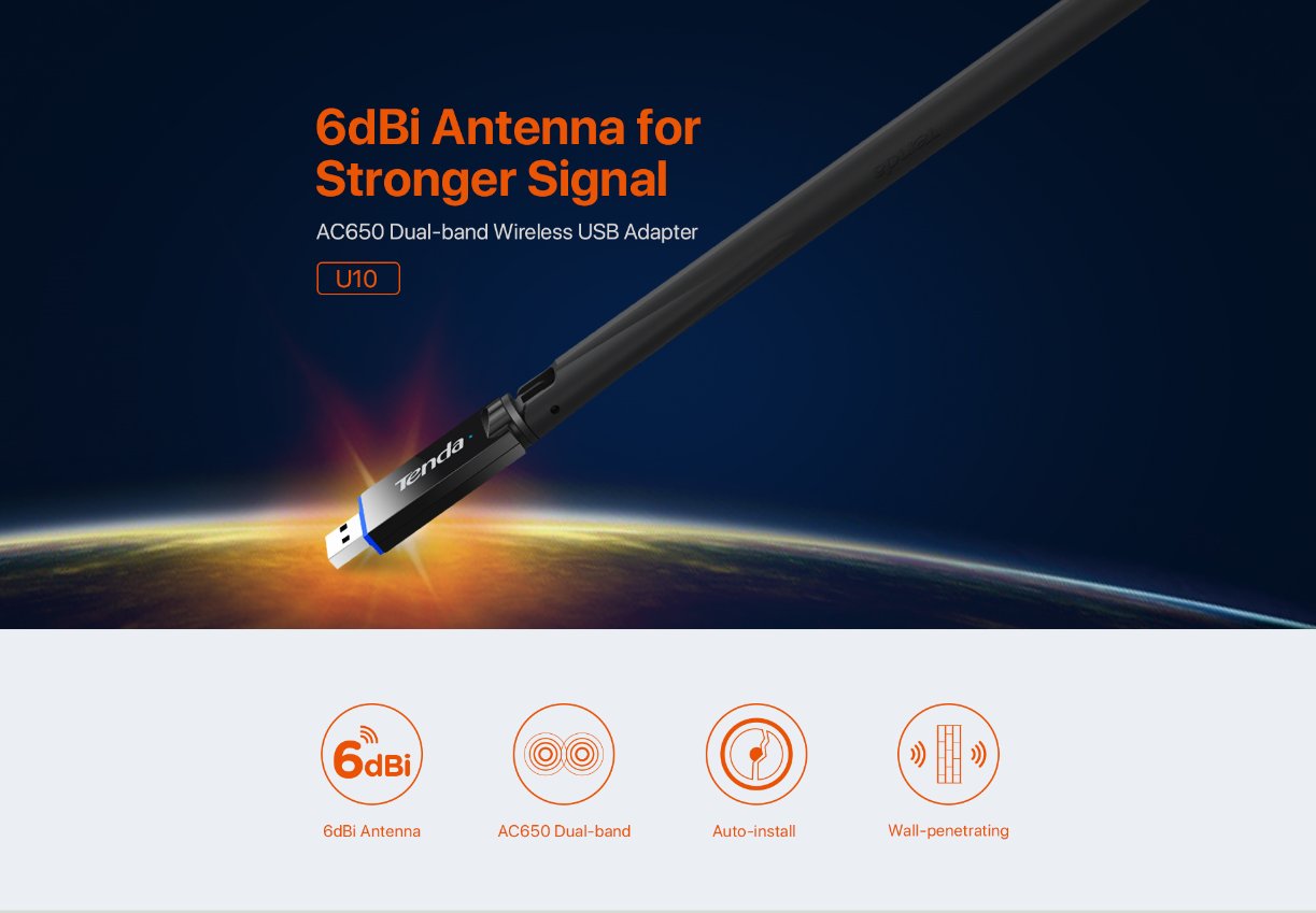 Tenda, the global leader in wireless router and networking devices launches its all-new U10 which adopts 11AC dual-band and supports MU-MIMO. The wireless speed is up to 433Mbps (5GHz) + 200Mbps (2.4GHz), bringing a smoother gaming experience for users.