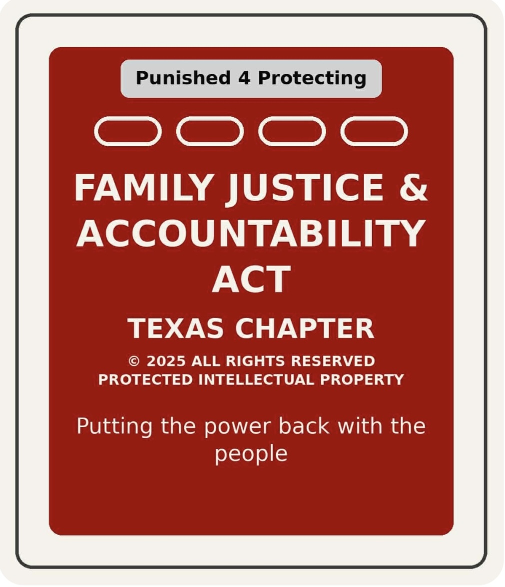 The Family Justice and Accountability Act of 2025 ©️ seeks to remove immunity protections for judges, attorneys, and state actors when actions occur outside constitutional oath, lawful jurisdiction, or established legal authority. The bill establishes enforceable accountability mechanisms designed to protect families and children while upholding constitutional law.