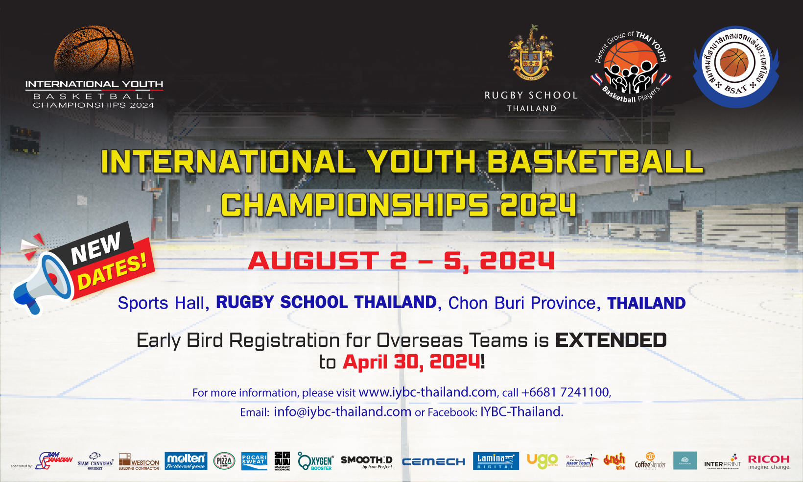 Bangkok, Thailand Apr 5, 2024 (Issuewire.com) - The new dates of the International Youth Basketball Championships 2024 (IYBC 2024) were announced. The four-day tournament, organized by the Parent Group of Thai Youth Basketball Players and supported by the Basketball Sport Association of Thailand (BSAT) will take place from August 2-5, 2024 at Rugby School Thailand, Chonburi Province, Thailand.