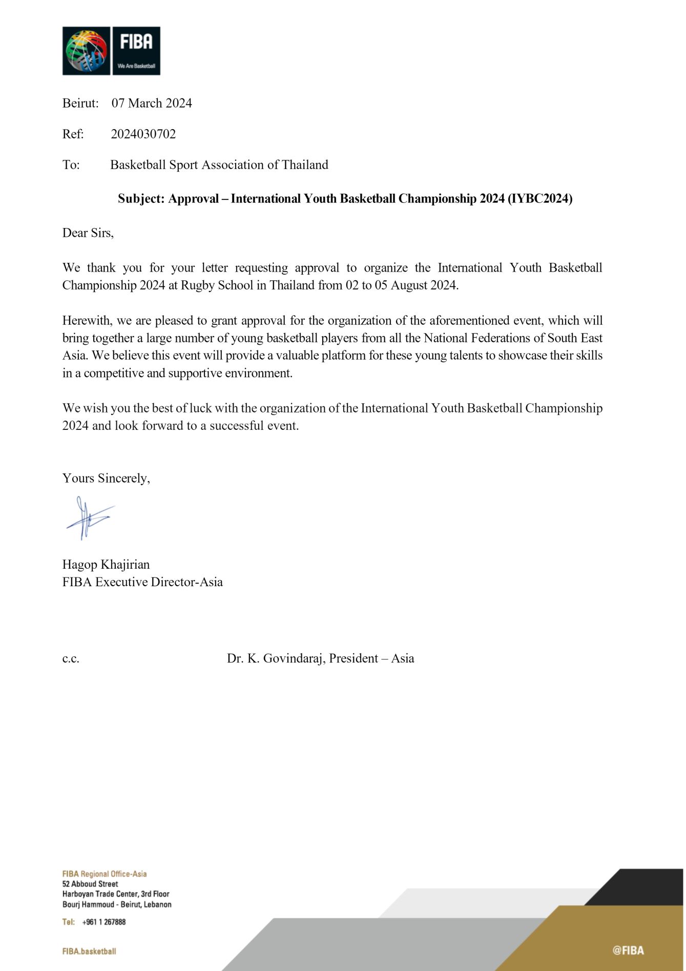 "We’re pleased that the International Basketball Federation (FIBA) has approved the International Youth Basketball Championships (IYBC) for the second year. This shows the FIBA always values and continues to encourage the development of youth basketball in the region.
