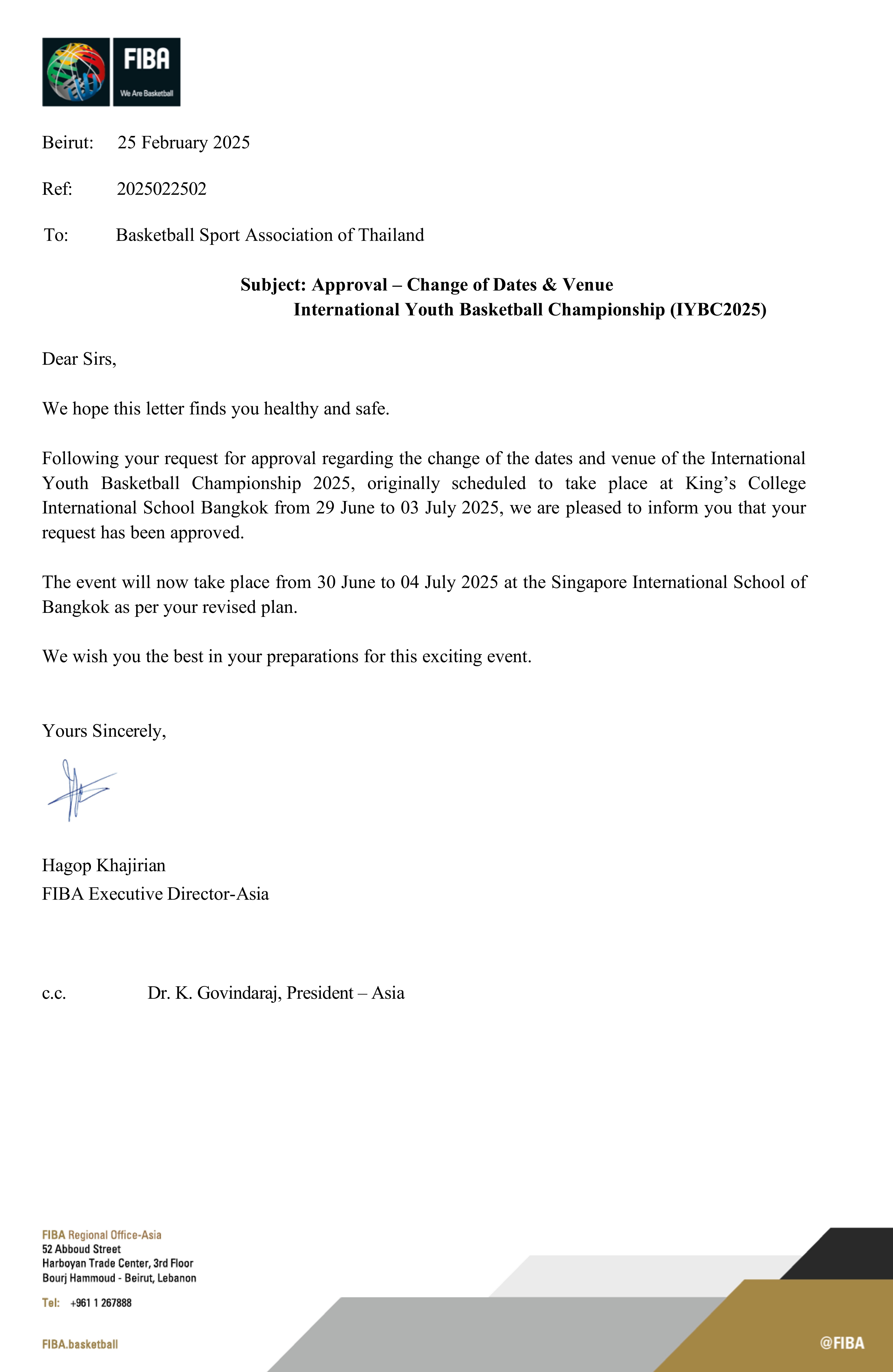 Bangkok, Thailand May 7, 2025 (Issuewire.com) - The biggest International youth basketball tournament, “INTERNATIONAL YOUTH BASKETBALL CHAMPIONSHIPS 2025 – IYBC 2025” in Thailand will take place during June 30 – July 4, 2025, at Singapore International School of Bangkok.