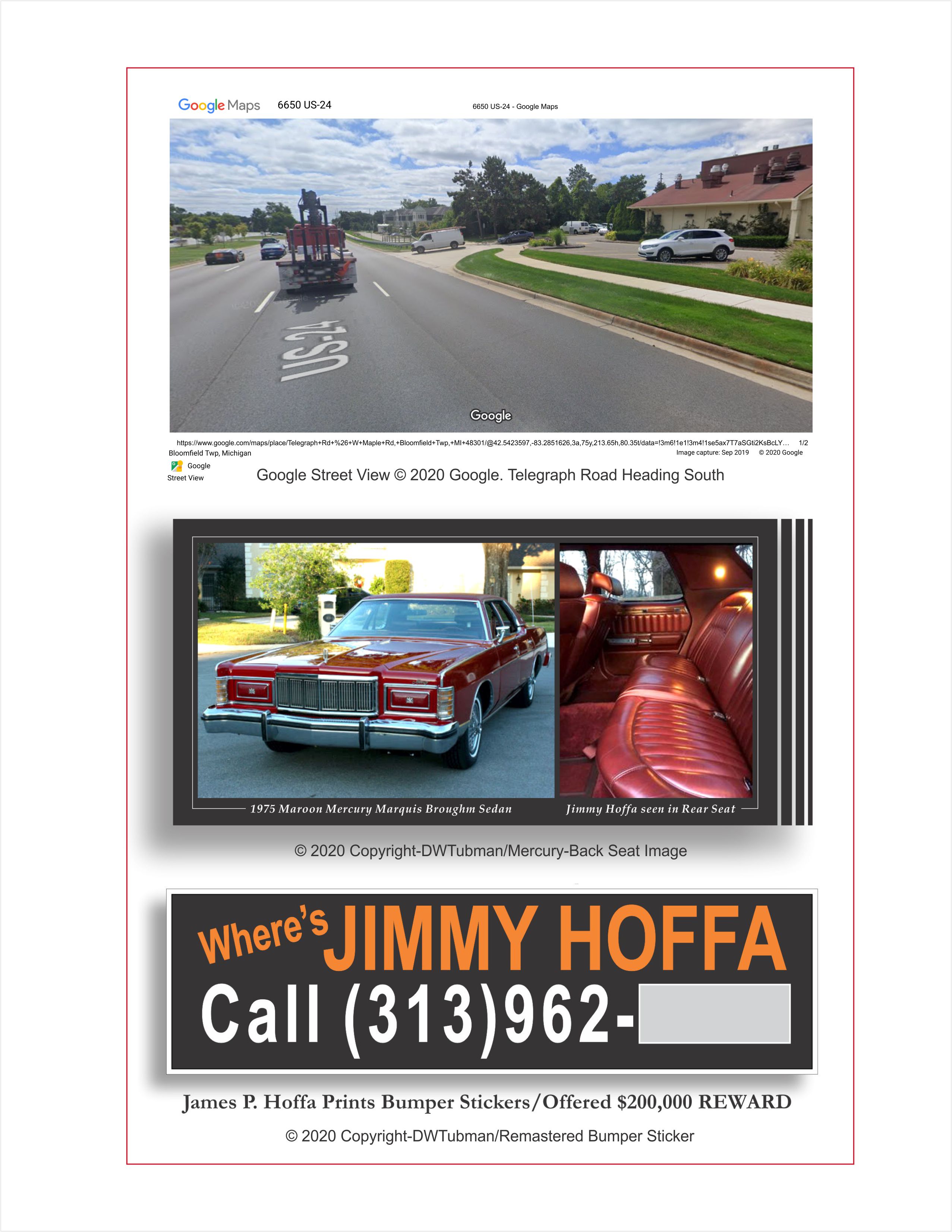 -“I’m in a unique position (possibly the only person alive), who can tell my parent’s story and hopefully inspire others who know more or have a remote memory that fits this account and corroborates the details given as to ‘What happened after Jimmy Hoffa left the Red Fox Restaurant that day.”