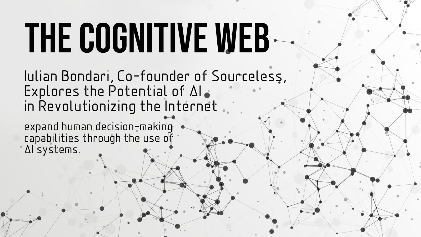 In summary, the Cognitive Web is an innovative approach to internet architecture that aims to expand human decision-making capabilities through the use of AI systems. Sourceless is a project that is heavily focused on education, technology, and innovation, and aims to promote the development of new technologies that will benefit humanity as a whole.