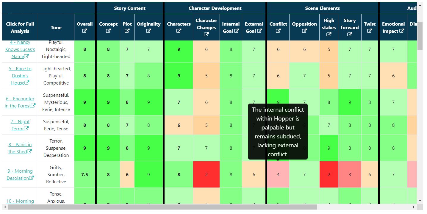 - Character development, however, is stronger than ever, with most nominees hitting scene-level scores above the 70th percentile.