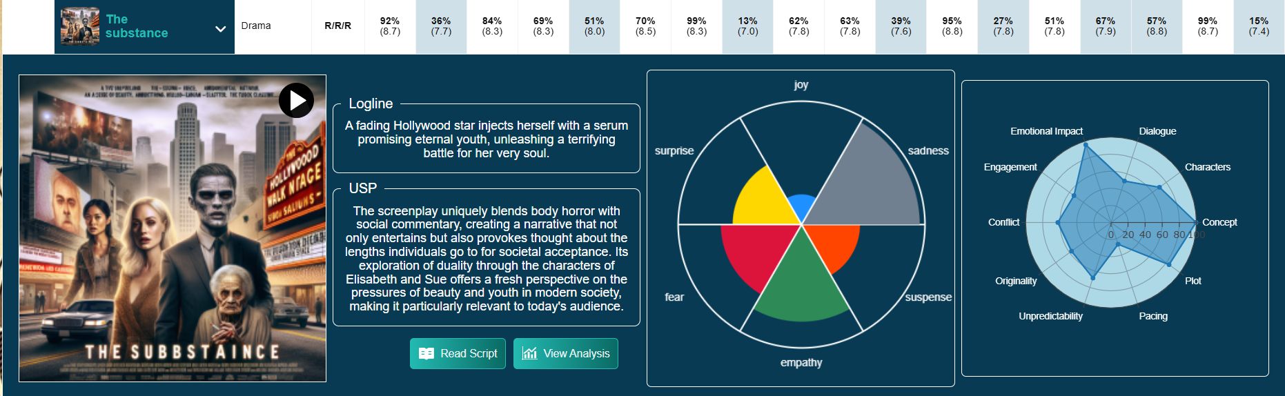 Beyond improving a single script, these tools help writers grow their craft. Re-run the analysis after a rewrite and watch key metrics climb—something no human coverage team could match on such a rapid turnaround.