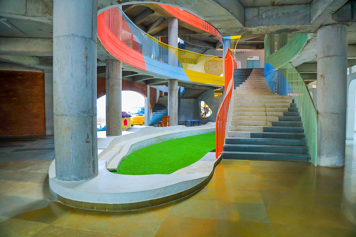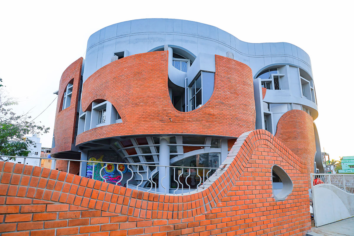 Designed by Fine Architects, the school’s architecture blends functionality with aesthetics. Curved elevations, exposed brick facades, and a central courtyard ensure abundant natural light and ventilation. Sculptural staircases and thoughtfully designed learning spaces foster an inspiring environment for both students and educators.
