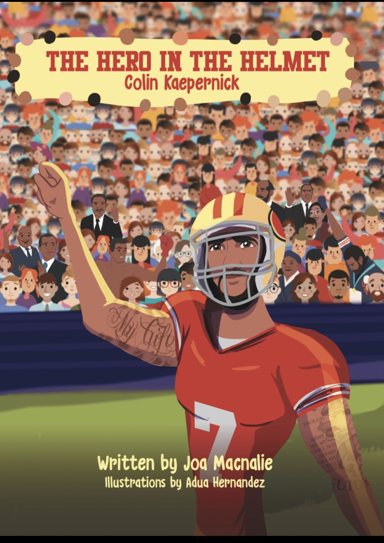 According to Macnalie, “The Hero in the Helmet” is a unique children’s story based on superstar athlete and humanitarian Colin Kaepernick, who became a national figure after he began kneeling during the singing of the national anthem at NFL games.