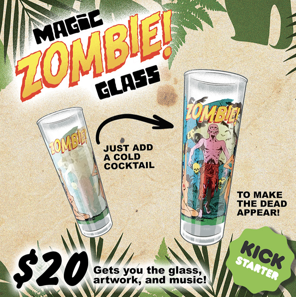 The “Magic ZOMBIE! Glass” is exclusively available on Kickstarter through the end of this month: www.kickstarter.com/projects/magiczombieglass/magic-zombie-glass. Every pre-order placed through the campaign will receive the magic glass, special limited artwork, and original exotica music - everything necessary to throw your own haunted luau this summer.