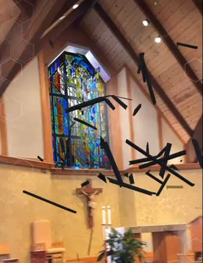 Mother of Sorrow Sacred Art Experience from the USA - A first of its kind. A site-specific test project aimed to reunite and invite people back into sacred spaces after the pandemic. It takes the existing church-stained glass and shows a visual representation of the transformation of bread and wine into Body and Blood.