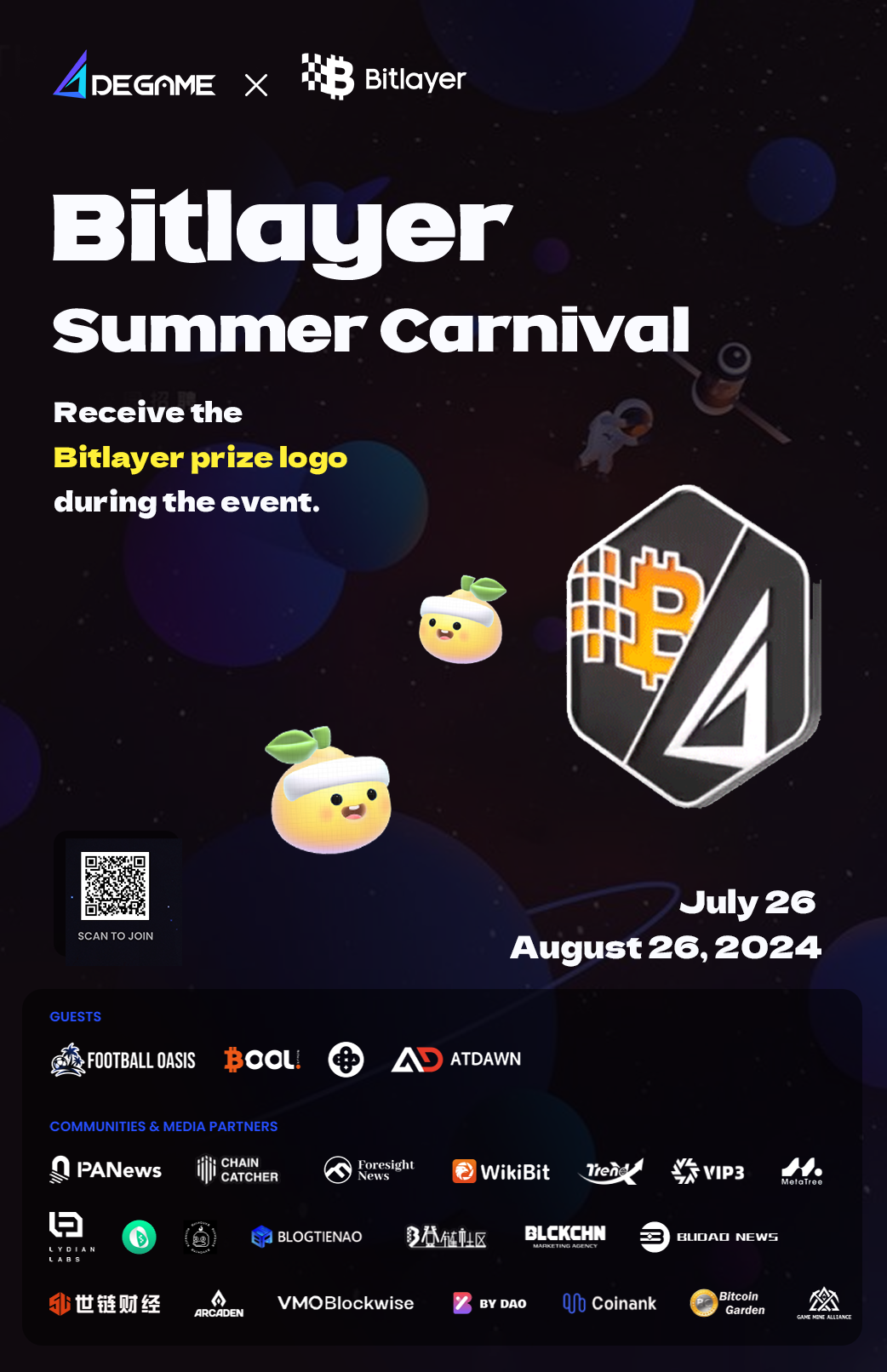With Bitlayer standing out in Bitcoin Layer 2s, the buzz around DeGame, participation from popular communities, and focused reporting by leading industry media, the Bitlayer Summer Carnival is set to be the most notable Web3 event this summer.