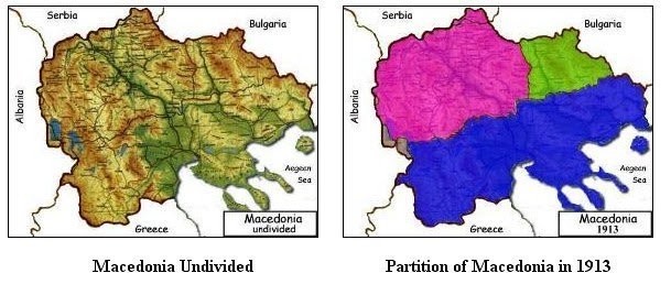 Macedonian schoolchildren will no longer be taught that Macedonian heroes are Macedonian. They will be told that they're "Bulgarian". They will be taught that ancient Macedonians were "Greek". Both notions are tragically laughable. They are not permitted to be taught that all of Macedonia's territory was partitioned in 1913 among Serbia, Bulgaria, Greece and later, Albania and that each country executed campaigns of ethnic cleansing against the indigenous Macedonian populations. The name Macedonia was denied and brutally suppressed. Greece, in particular, outlawed the use of it and only recently began claiming that the Macedonian name belongs to them.