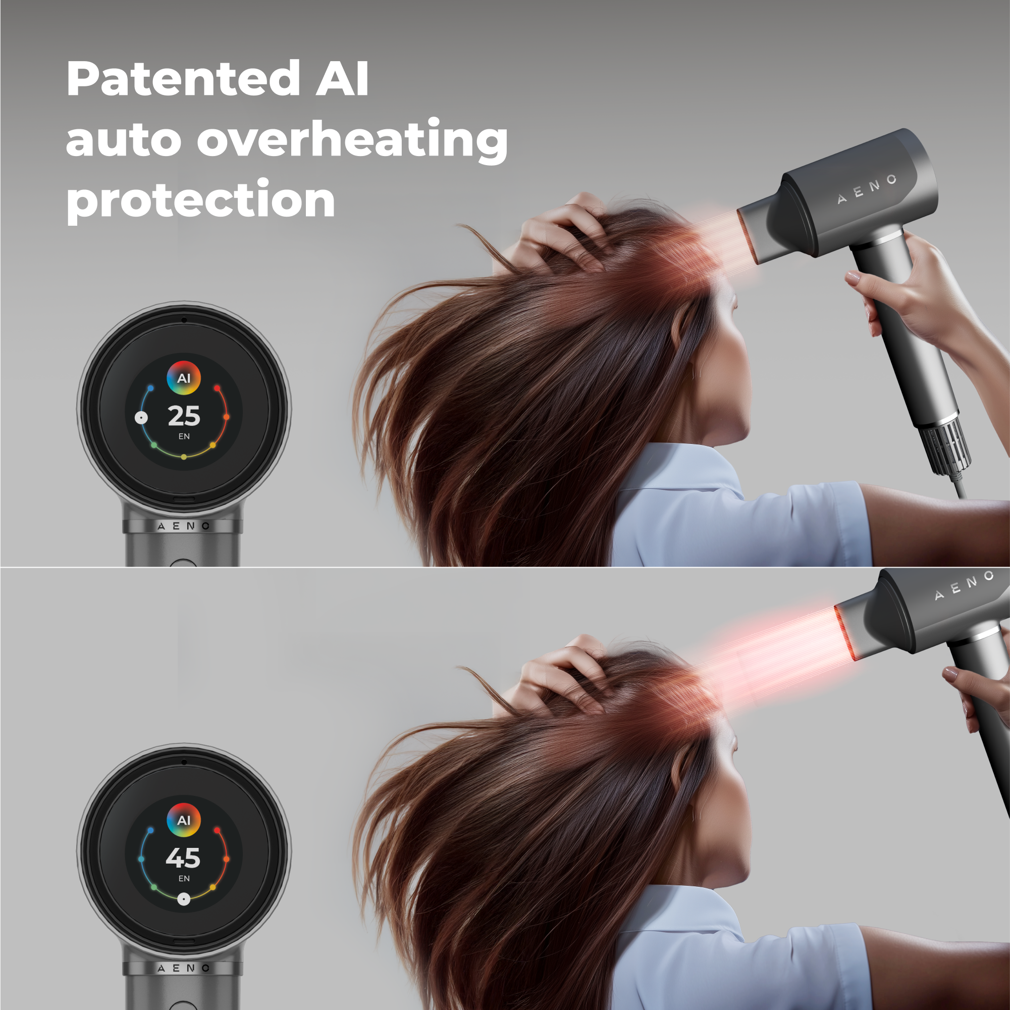 AI ProDryer was trained using artificial intelligence to perform like a professional stylist. AENO used real consumer behavior data how people move, hold, adjust, and style and applied machine learning to fine-tune every function. From heat control to motor response, every detail is optimized to deliver salon-quality results at home, without needing professional skills.