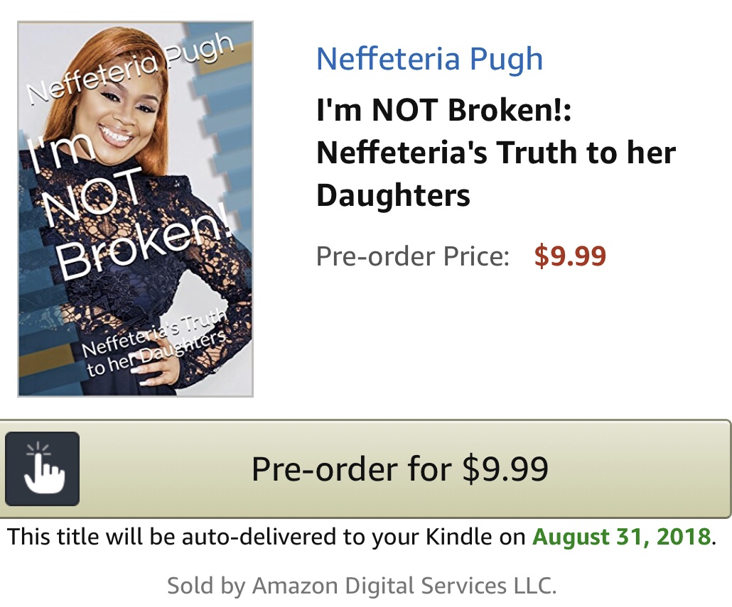 Order the #1 New Seller on Amazon "I'm NOT Broken" written by Neffeteria "Neffe" Pugh place order HERE today.