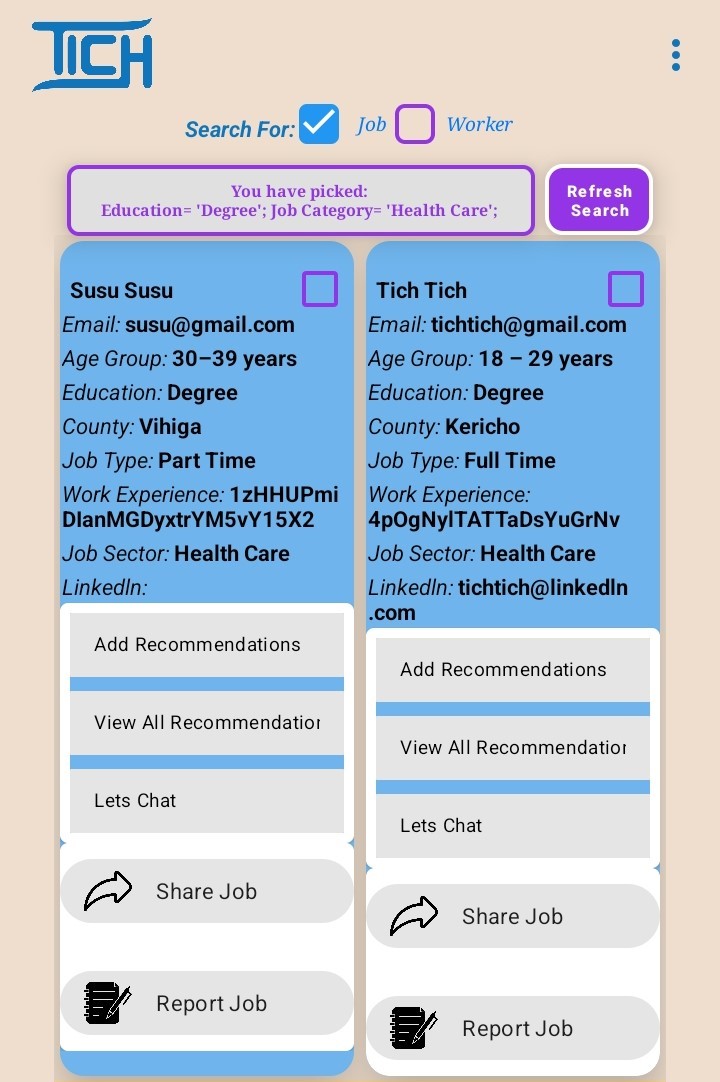 Tich is a mobile application dedicated to increasing employment visibility for 15–34-year-old urban Kenyans. By aggregating gig work and improving matching efficiency, Tich strives to create a more equitable and accessible labor market.
