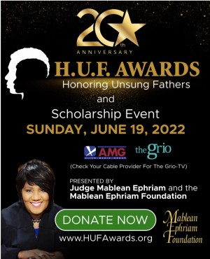 The HUF Awards is one of the longest-running most celebrated Father’s Day events in Los Angeles. Now in its commemorative 20th year, Judge Mablean Ephriam and the Mablean Ephriam Foundation have celebrated fathers in an annual award ceremony annually for nearly two decades. This year that celebration will be televised nationwide on Byron Allen’s GrioTV