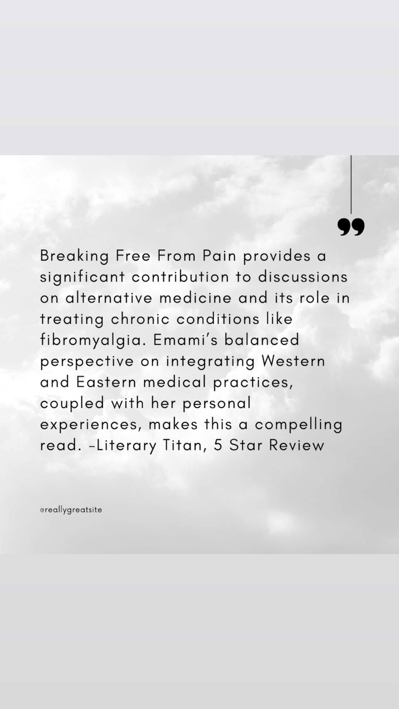 Discover a renewed sense of hope and a roadmap to a brighter future within the pages of "Breaking Free From Pain." Shari Emami's compassion and unwavering support shine through, inspiring all those on a similar journey.