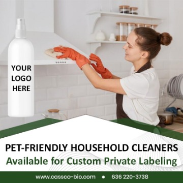 CassCo offers a full line of PET-FRIENDLY household cleaners, available for private labeling. We offer free custom label design, and low minimum runs. For further information, please contact us at 636-220-3738 or visit us at www.CassCo-Bio.com