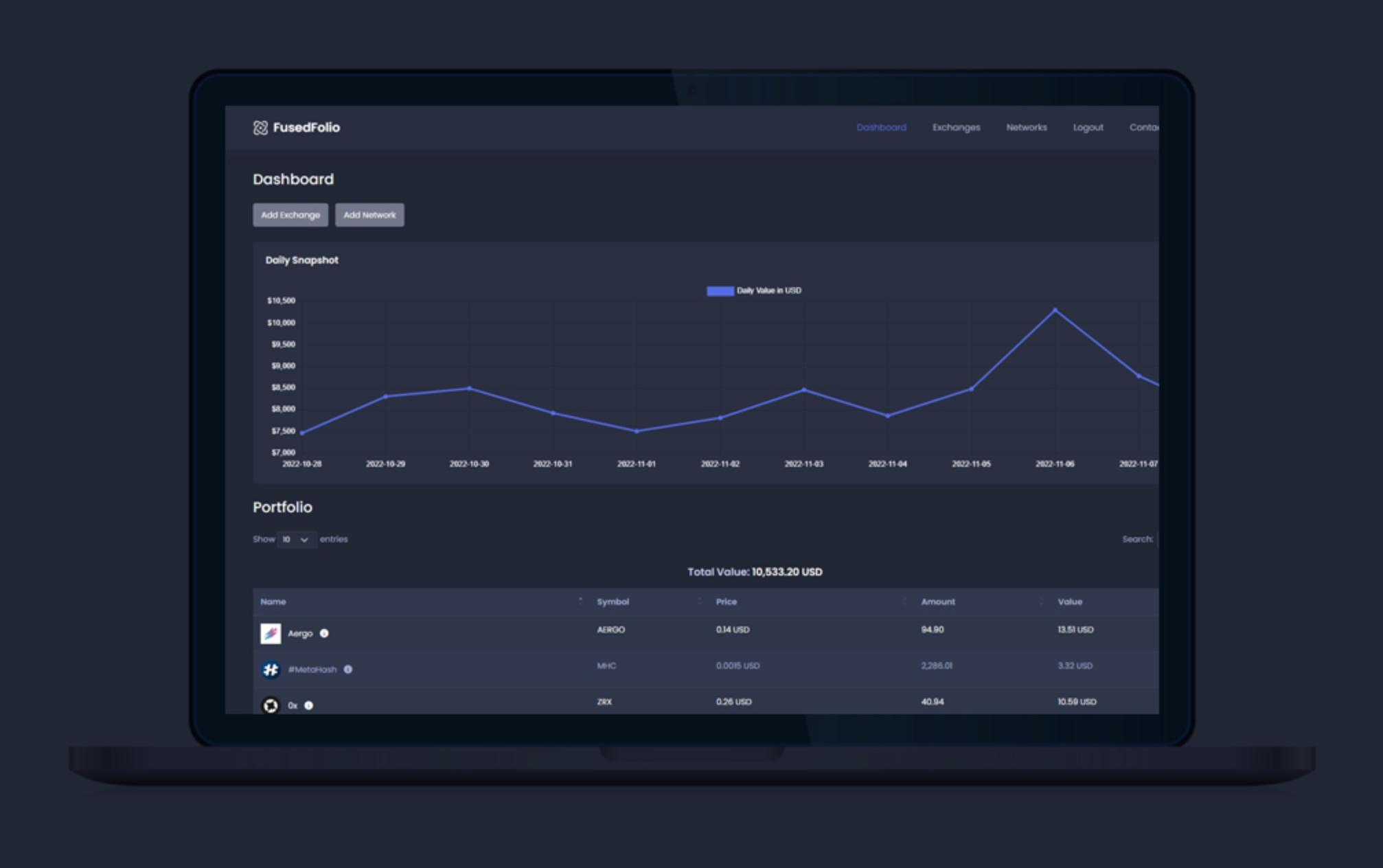 FusedFolio is a service that was created by and for crypto investors to help them with the management of their crypto portfolio. It is a service that helps users connect their different wallets and exchanges. The service makes it easy to fetch balances from different exchanges and private wallets so that the investor can get a consolidated view of the holdings.