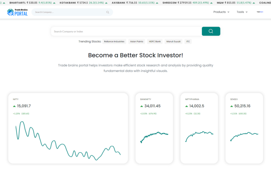 Although this segment already has a few leading players namely Moneycontrol, Marketsmojo, Trendlyne, etc, however, looking at the current trend of increasing participation and the required need for a simplified stock analysis platform towards DIY investing, Trade Brains is confident to play a bigger role and provide a better value to stock market investors in India.