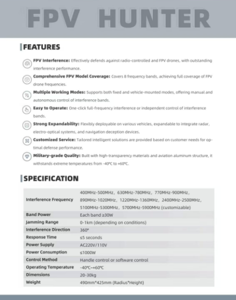 III. Technical Specifications and FPV Defense Capabilities