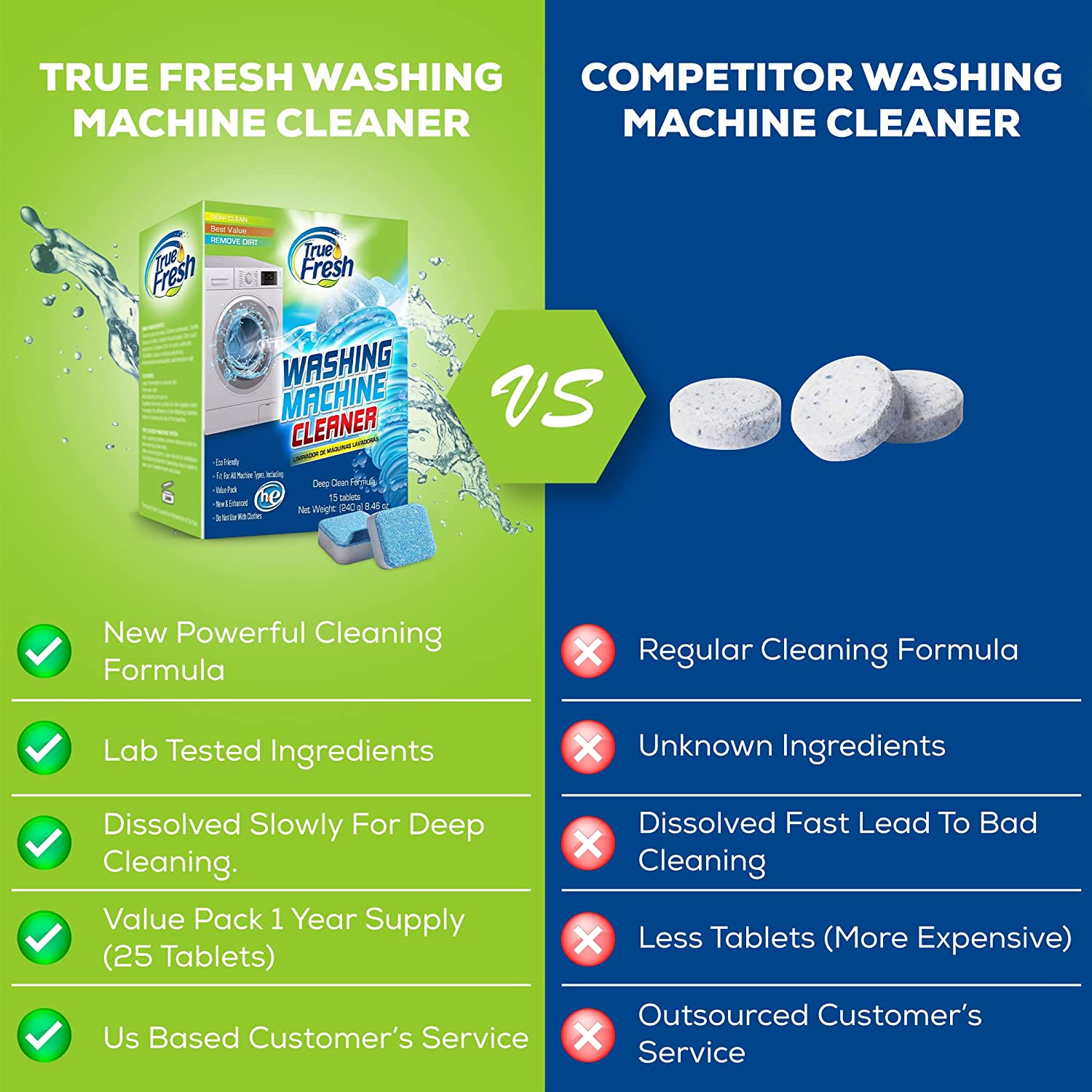 Washing machines are used frequently to clean clothes, bedding, and other household items, but they can quickly accumulate dirt and other unwanted particles. Over time, this buildup can lead to unpleasant odors and even damage to your machine. The True Fresh Washing Machine Cleaner is formulated to eliminate these issues and keep your machine running smoothly.